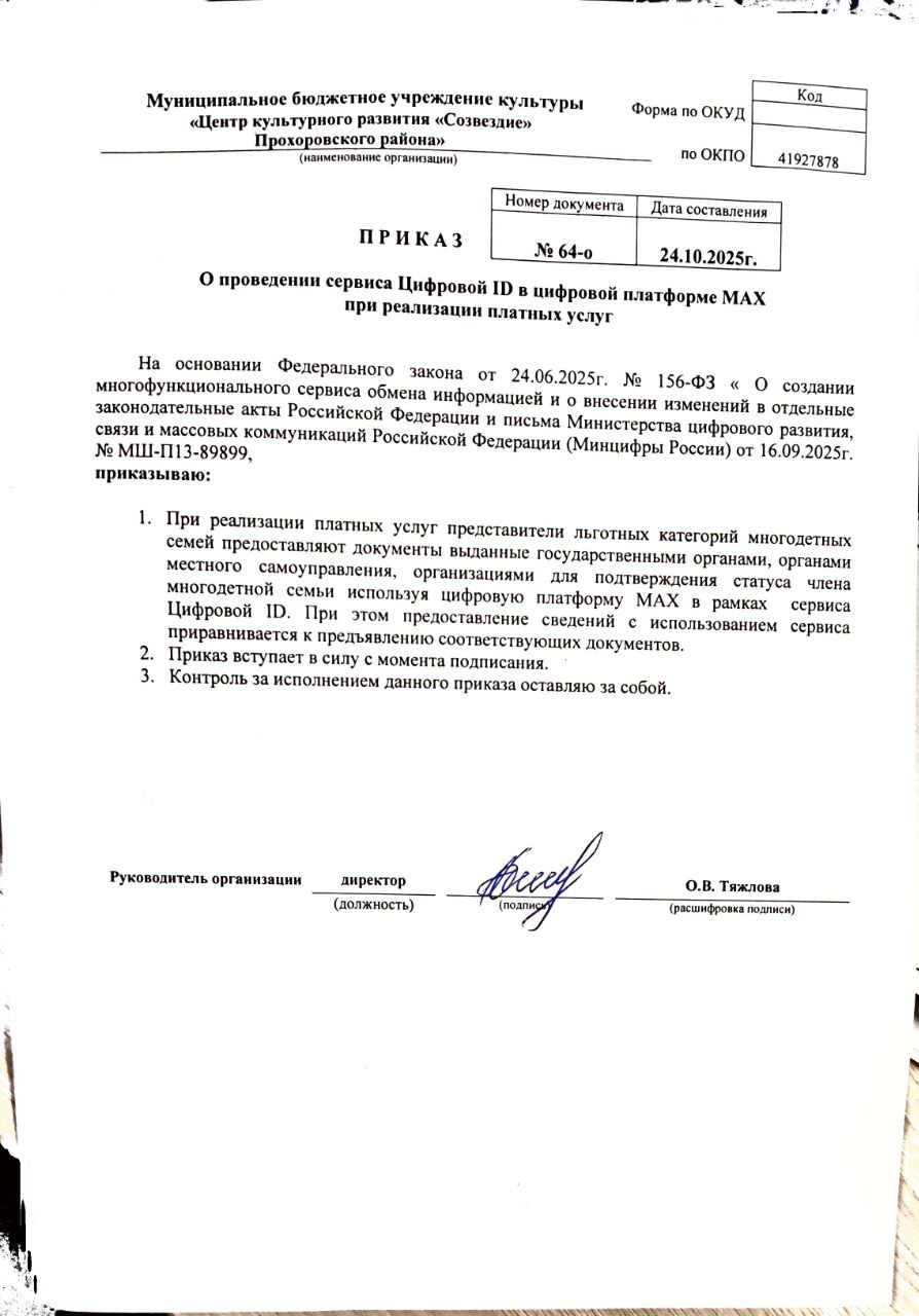 Приказ о проведении сервиса Цифровой ID при реализацииплатних услуг